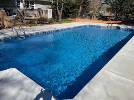 The timeline depends on the pool type and complexity, but most standard liner pools take a few weeks, while custom gunite pools may take longer. We keep you updated throughout the process.